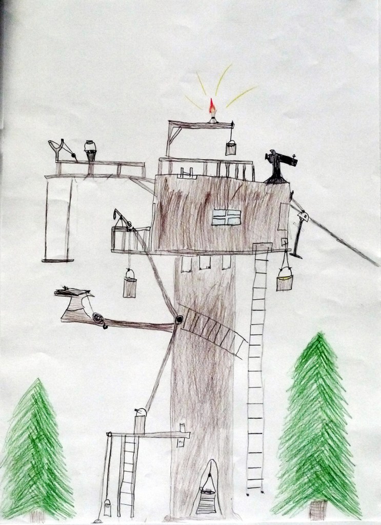 Jedes Jahr bauen wir weiter, Neue Stockwerke, manchmal ein Gefährt, ein Erdhaus, einen Lehmofen und und und – Euren Ideen sind (fast) keine Grenzen gesetzt!