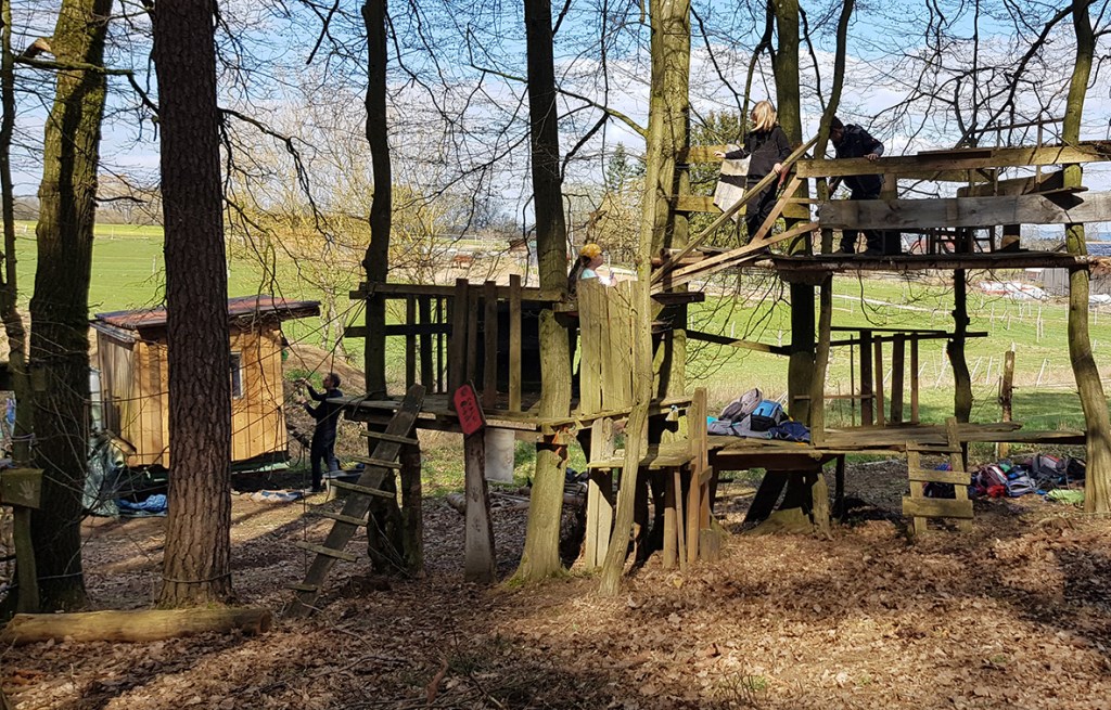 Dies ist unsere Außenstelle: Selbstverständlich befinden sich auch auf „Dem Land“ Hütten und Häuser. Doch das ursprüngliche Baumhausdorf in einem Waldstück in Weigenhofen gleicht inzwischen einem Imperium und ist weiterhin erhalten und nutzbar.