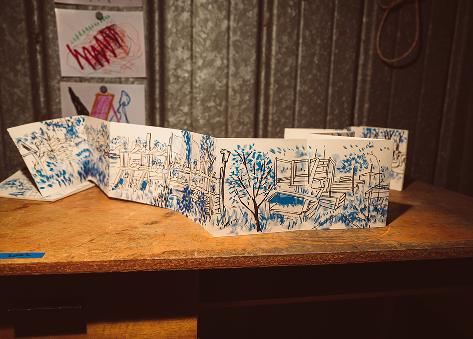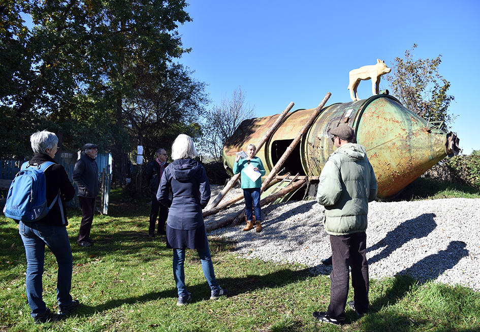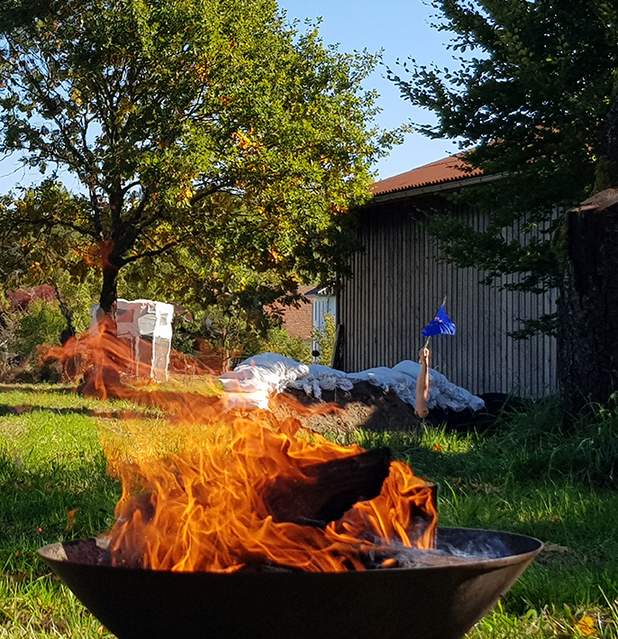 Im Grünen, dezentral, wird visuell und architektonisch definiert durch den Umbau eines auf dem Gelände vorhandenen, ehemaligen Silos. Damit entsteht derzeit ein (mobiler) Projektraum, welcher die Szene vor Ort und darüber hinaus belebt, bereichert und verbindet. Das weitläufige Hof- und Waldgelände und der als Atelier genutzte Garten bieten ausreichend Platz für Das Silo und einen halb-öffentlichen Bereich für Veranstaltungen. Mit der Ausstellung „Gerade, wie die Bäume“ wird einerseits der Sichtbarkeit der künstlerischen Produktion Rechnung getragen, andererseits eröffnet der ungewöhnliche Kontext neue Perspektiven und ermöglicht die so wichtige wertvolle gesellschaftliche Teilhabe an Kunst für Menschen, wohnhaft außerhalb der großen Städte, quer durch alle Jahrgänge und gesellschaftliche Schichten.