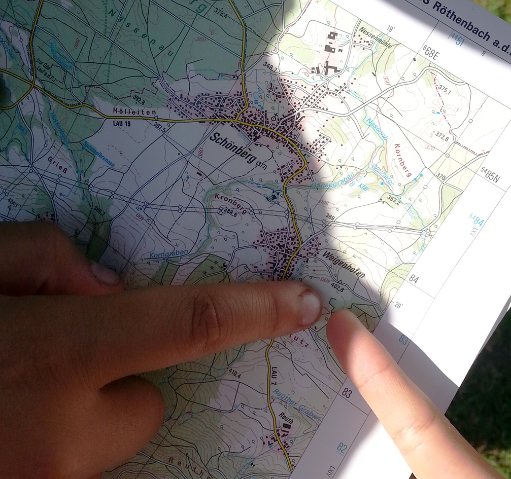 Wir nutzen alles, was uns die nahe Umgebung bietet. Wir streifen durch das Gelände, spielen im Sommer am Bach und im Winter mit dem Schnee – Wir suchen uns die Wege durch die Natur selbst.