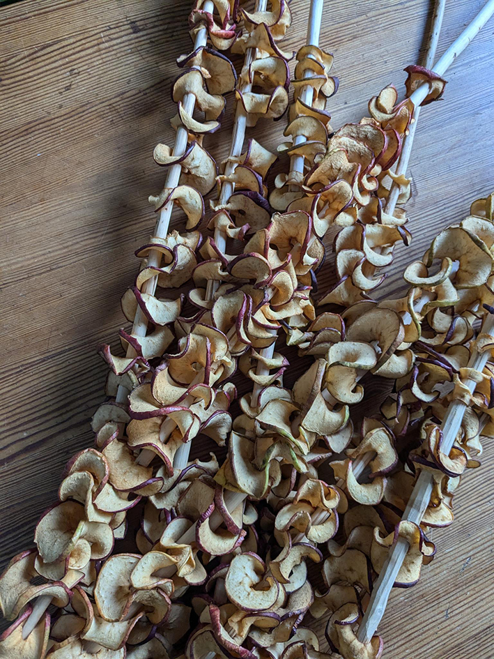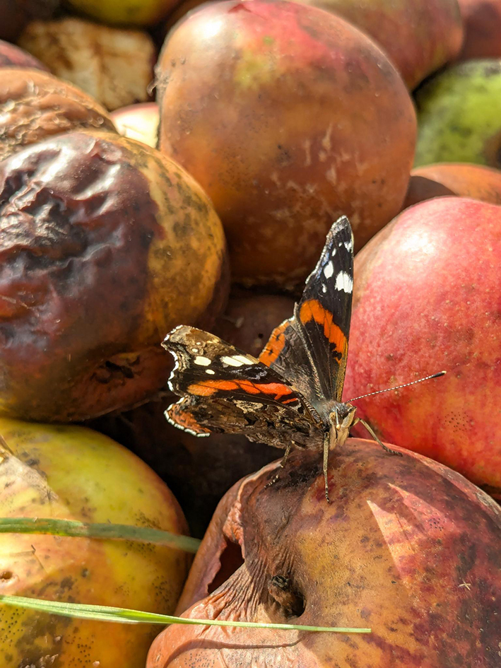 Stattdessen pflegen wir mit den Kindern das Gelände naturnah; mit dem Ziel, tatsächlich auch Gemüse ernten zu können. Die Kinder erfahren und erleben sehr direkt, was es braucht, bis die Kartoffel auf den Tisch kommen oder im Feuer gebacken werden kann. Wir bauen Gemüse an für den eigenen Bedarf, ernten Äpfel, Birnen, Kirschen und Quitten. Der Sommer schenkt uns allerlei Beeren. Wir konservieren oder verschenken, was zu viel ist zum sofortigen Essen, leckere Kräuter bereichern unsere Küchenrepertoire und pflücken bunte Blumen für jahreszeitliche Kränze.