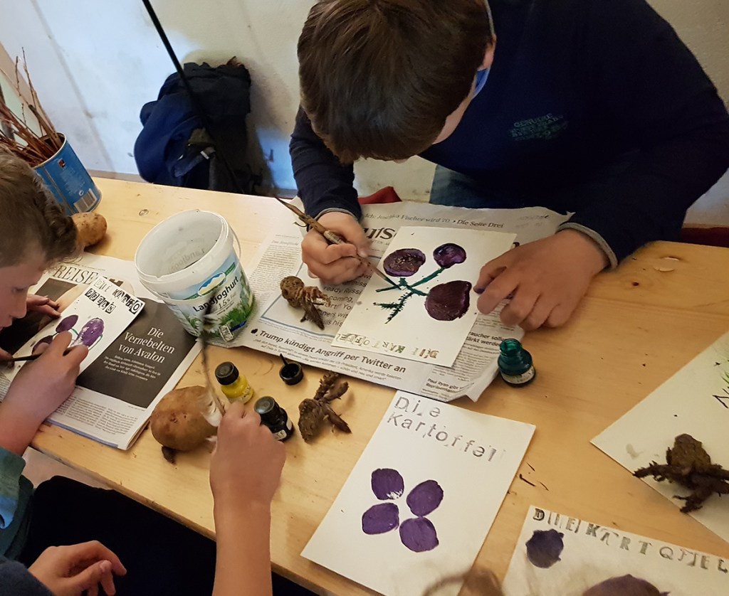 Lehrplanbezogene Inhalte werden in praktische Arbeitsformen übertragen und angewandt, direkt erlebt und reflektiert. Die Arbeits- und Themenbereiche speisen sich aus dem handwerklich/ landwirtschaftlichen und dem kunst/ naturbezogenen Bereich. Die Schulklassen werden begleitet von den jeweiligen Pädagoginnen und Pädagogen – wir bringen unser Know-How ein in Bezug auf Hof, Handwerk, Kunst, Natur und Erlebnis – sorgen für die Anbahnung dessen und stellen dafür die notwendigen Orte, Werkzeuge und Materialien zur Verfügung.
