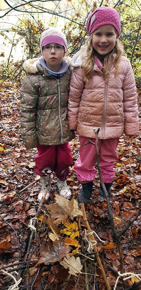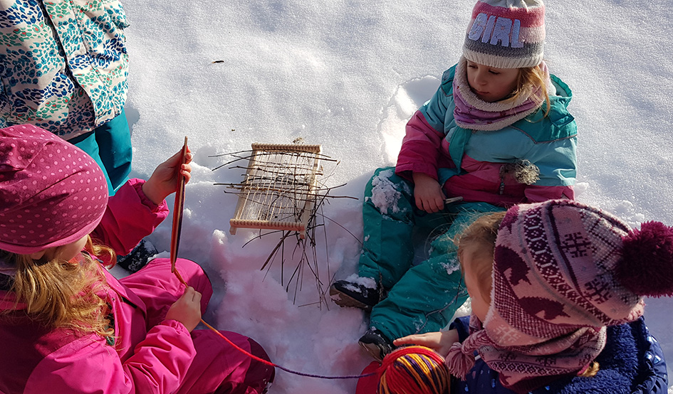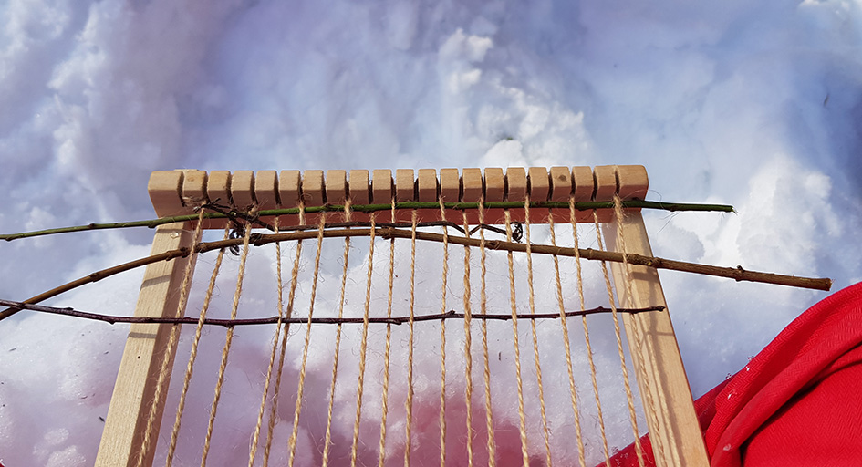 Das wussten wir zu nutzen: Ein Vulkan, ein Reh, eine Katze, ein Hase und ein wohliges Iglu sind entstanden. Und außerdem für unsere drei Freunde: Ein kuschliges, gewebtes Bett. Katharina hat unseren Webrahmen noch mit nach Hause genommen, um ihn bis nächste Woche fertig zu machen. Wir haben gewebt aus Stöckchen, Halmen und etwas Wolle. Schön war’s!