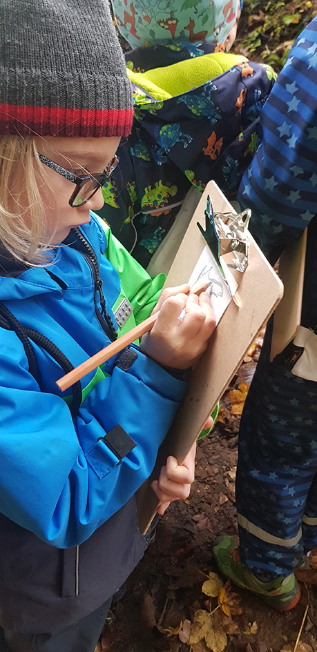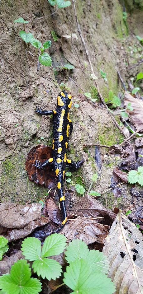 Unterwegs halten wir die besonderen Entdeckungen mit Stift und Papier fest. Auch „unser“ Feuersalamander ist wieder da!