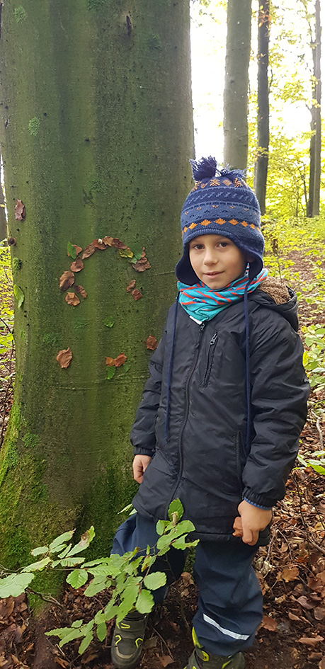 Tag 05 Was für ein sonniger Herbsttag! Entsprechend unserer Karten von letzter Woche, überlegen wir uns dieses Mal, wie wir den Weg vermessen könnten: In Nasenspitzen, Fußlängen, Körperlängen? Oder ganz anders, in Blattspitzen oder Grashalmlängen?