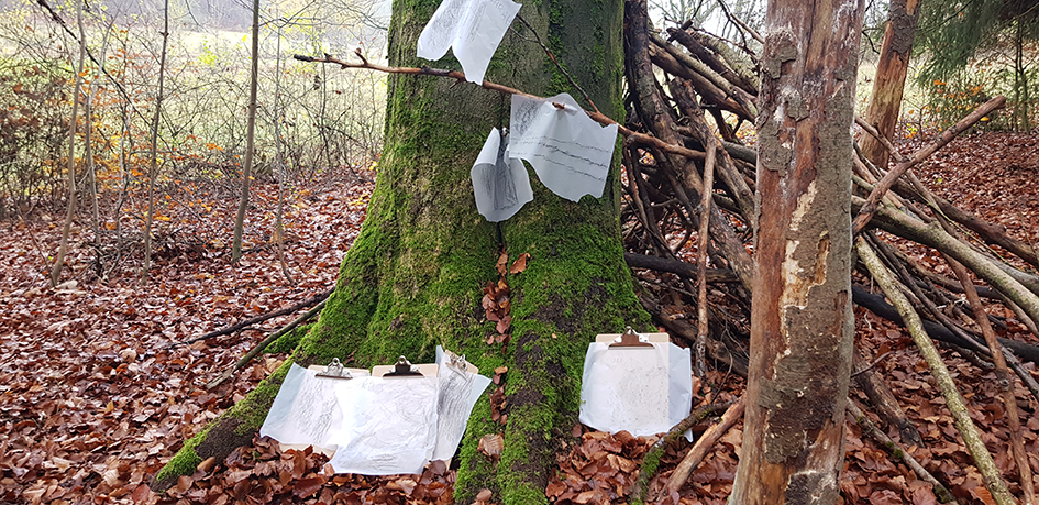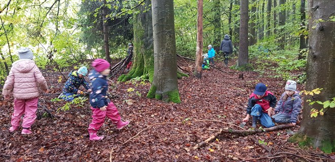 Tag 02 Auf der Suche nach unserem Basislagerplatz – Waldipeter und Woozel – so heißen unsere neuen Freunde inzwischen – sind erneut mit dabei. Unterwegs sammeln wir Farben, entdecken einen Feuersalamander – Und ganz besonders: Jedes Kind bekommt heute seinen eigenen Forschungsbeutel. Dieser wird jeden Mittwoch dabei sein, Und natürlich gestalten wir diesen, denn jeder Beutel ist einzigartig.