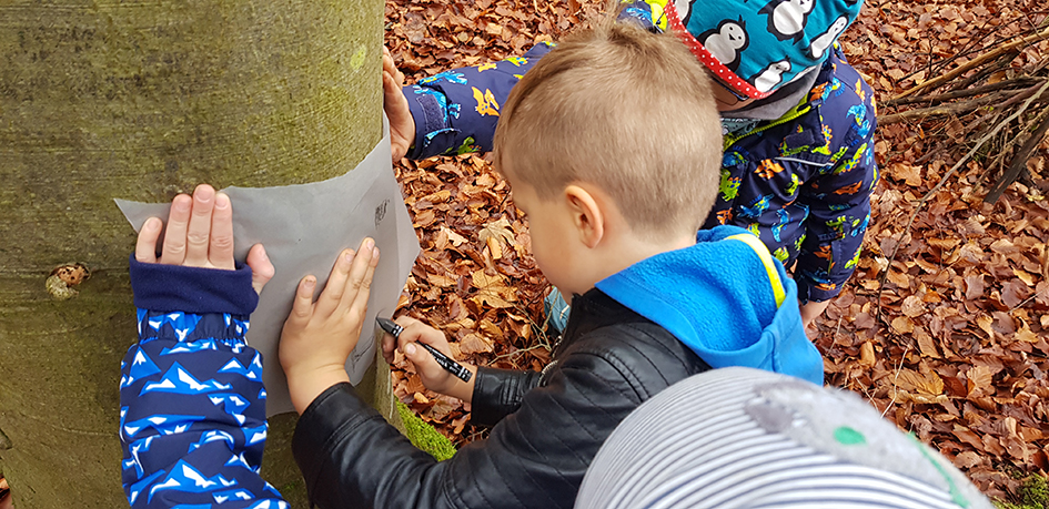 Gemeinsam geben wir einzelnen Bäumen „Gesichter“, Frau Lang-Ast, Woozel und Waldipeter freuen sich über viele Freundinnen und Freunde!